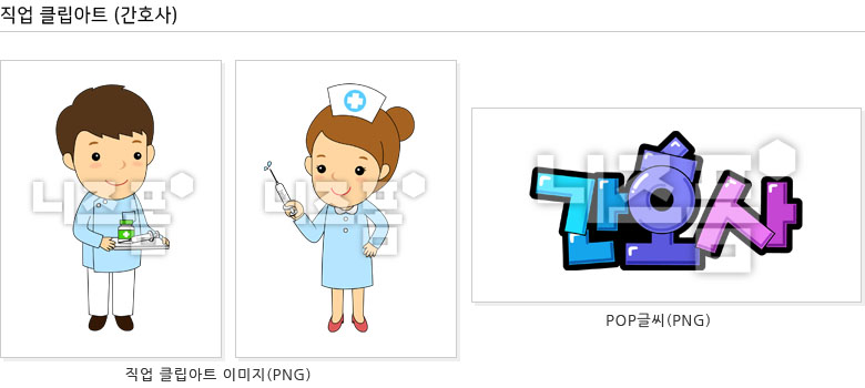 본 클립아트는 가정/유치원/어린이집/학교의 각종 교육자료 등에 사용하기 좋은 일러스트로 구성된 직업 클립아트(간호사)이며,
