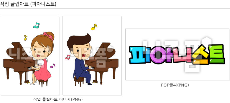 본 클립아트는 가정/유치원/어린이집/학교의 각종 교육자료 등에 사용하기 좋은 일러스트로 구성된 직업 클립아트(피아니스트)이며,