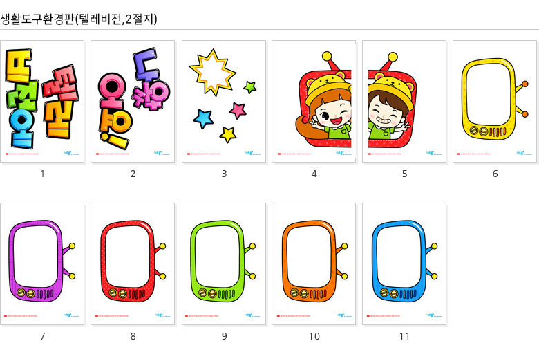 ★ 샘플+설명 프린트 를 클릭하시면, 샘플 1장이 프린트됩니다 구매 전, 샘플프린트를 통해 상품의 상세 이미지를 확인해 주세요! 본 콘텐츠는 표준보육과정에 맞춘 1월 생활도구 주제환경판으로, 아이들이 꼭 알아야 할 어린이집, 유치원 필수 주제별 환경판 중 하나입니다. 귀여운 티비상자와 POP로 구성되었으며, 프린트(A4)되는 장수는 총 11장입니다. 환경판의 크기는 완성시 약 795mm x 650mm(A4용지 8배)입니다. 티비상자 안에 아이들이 직접 그림을 그리거나, 아이들의 사진을 붙여 활용하시면 됩니다. 매월 주제에 맞게 주제별 환경판으로 유치원, 어린이집을 예쁘게 꾸며 보세요^^ | ![]() |