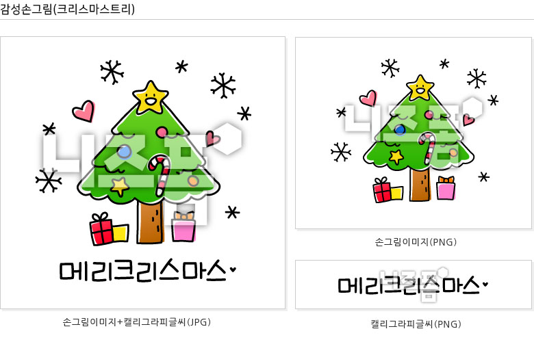 일러스트와 캘리그라피글씨로 구성된 감성손그림 클립아트(크리스마스트리)입니다.
