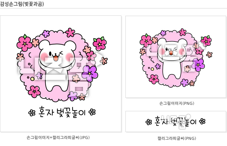 일러스트와 캘리그라피글씨로 구성된 감성손그림 클립아트(벚꽃과곰)입니다.