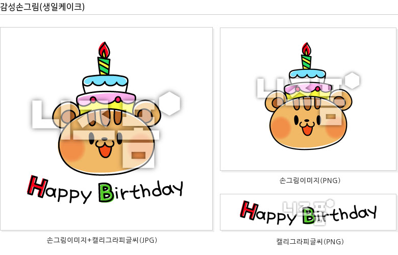 일러스트와 캘리그라피글씨로 구성된 감성손그림 클립아트(생일케이크)입니다.