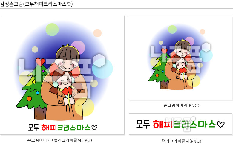 일러스트와 캘리그라피글씨로 구성된 감성손그림 클립아트(모두해피크리스마스♡)입니다.