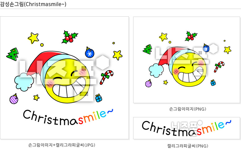 일러스트와 캘리그라피글씨로 구성된 감성손그림 클립아트(Christmasmile∼)입니다.
