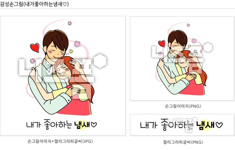 일러스트와 캘리그라피글씨로 구성된 감성손그림 클립아트(내가좋아하는냄새♡)입니다.