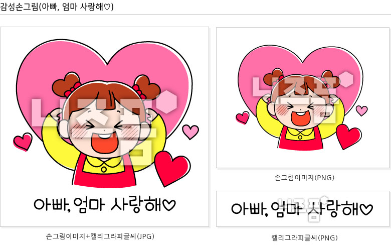 일러스트와 캘리그라피글씨로 구성된 감성손그림 클립아트(아빠,엄마사랑해♡)입니다.