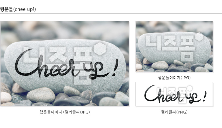 본 행운돌은 "Cheer up" 라는 캘리 글씨가 적힌 포토 이미지입니다.