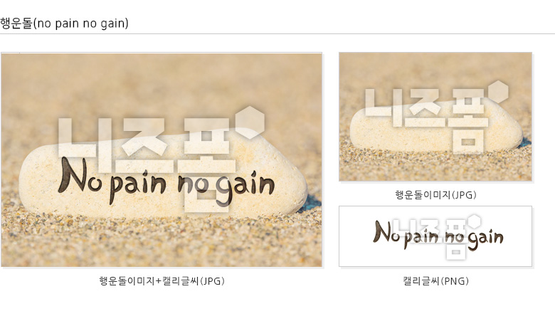 본 행운돌은 "No pain no gain" 라는 캘리 글씨가 적힌 포토 이미지입니다.