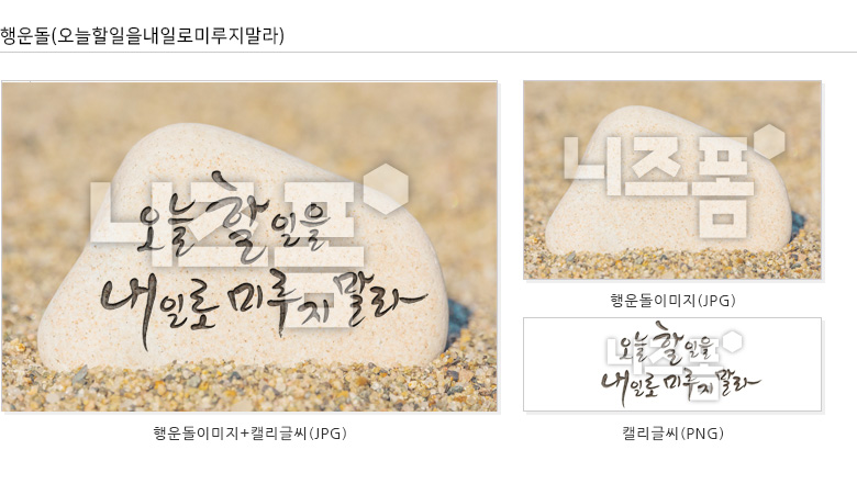 본 행운돌은 "오늘할일을내일로미루지말라" 라는 캘리 글씨가 적힌 포토 이미지입니다.