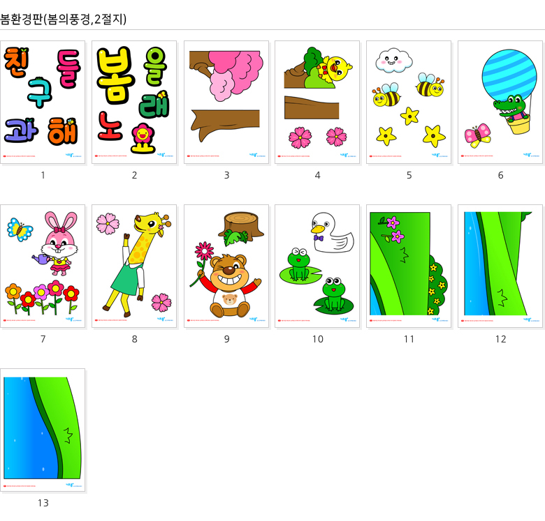 ★ 샘플+설명 프린트 를 클릭하시면, 샘플 1장이 프린트됩니다 구매 전, 샘플프린트를 통해 상품의 상세 이미지를 확인해 주세요! 본 콘텐츠는 표준보육과정에 맞춘 3~4월 봄과 동식물 주제환경판으로, 아이들이 꼭 알아야 할 어린이집, 유치원 필수 주제별 환경판 중 하나입니다. 동물들과 꽃 이미지와 타이틀POP로 구성되었으며, 프린트(A4)되는 장수는 총 13장입니다. 환경판의 크기는 완성시 약 810mm x 630mm(A4용지 8배)입니다. 봄에 볼 수 있는 다양한 동물과 꽃을 학습할 수 있습니다. 매월 주제에 맞게 주제별 환경판으로 유치원, 어린이집을 예쁘게 꾸며 보세요^^ | ![]() |