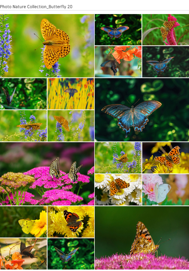 In the Butterfly Photo Collection, you will be able to see a selection 20 photos featuring the beauty of Butterfly and colors in Korea.