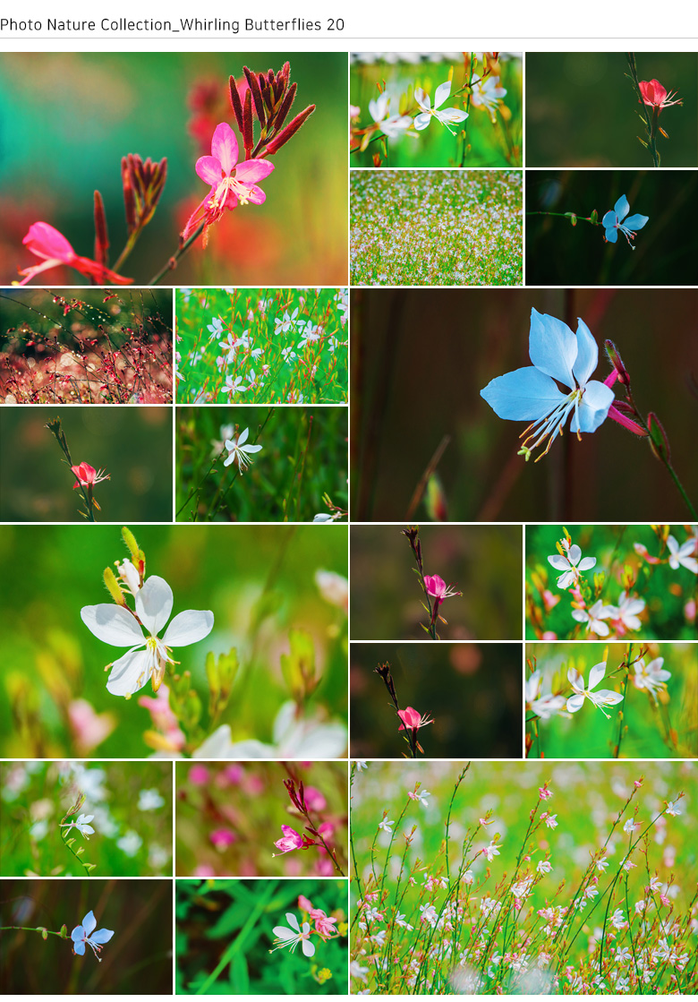 Whirling Butterflies 포토 컬렉션에서는 한국 자연 속 나비바늘꽃의 아름다움과 황금빛 컬러가 담긴 엄선된 20컷의 포토를 만날 수 있습니다.