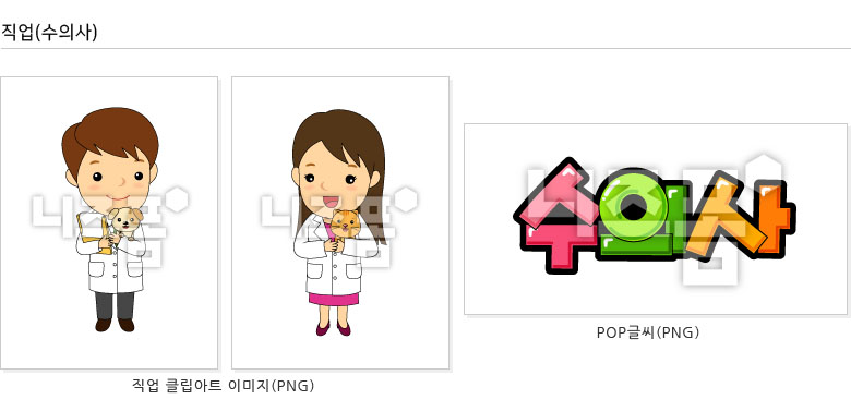 본 클립아트는 가정/유치원/어린이집/학교의 각종 교육자료 등에 사용하기 좋은 일러스트로 구성된 직업 클립아트(수의사)이며,